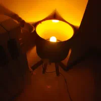 آباژور ۳پایه کوتاه مناسب اتاق خواب یا گوشه ی سالن جنس پایه ها چوب جنس کلاهک قابل شستشو مازراتی کاملا سالم ارتفاع ۶۰