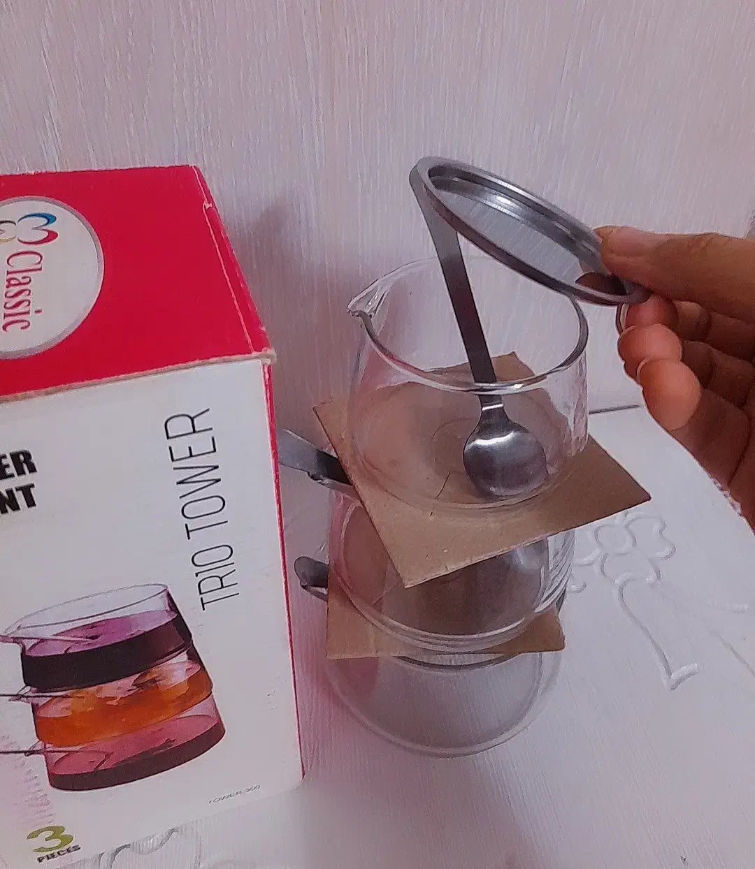 مرباخوری سه طبقه درحد نو ،فقط یک بار استفاده شده همراه کارتن و سه عدد قاشق