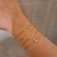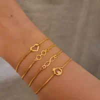 دستبند با پلاک طلا و زنجیر استیل طلایی