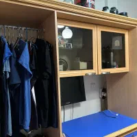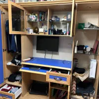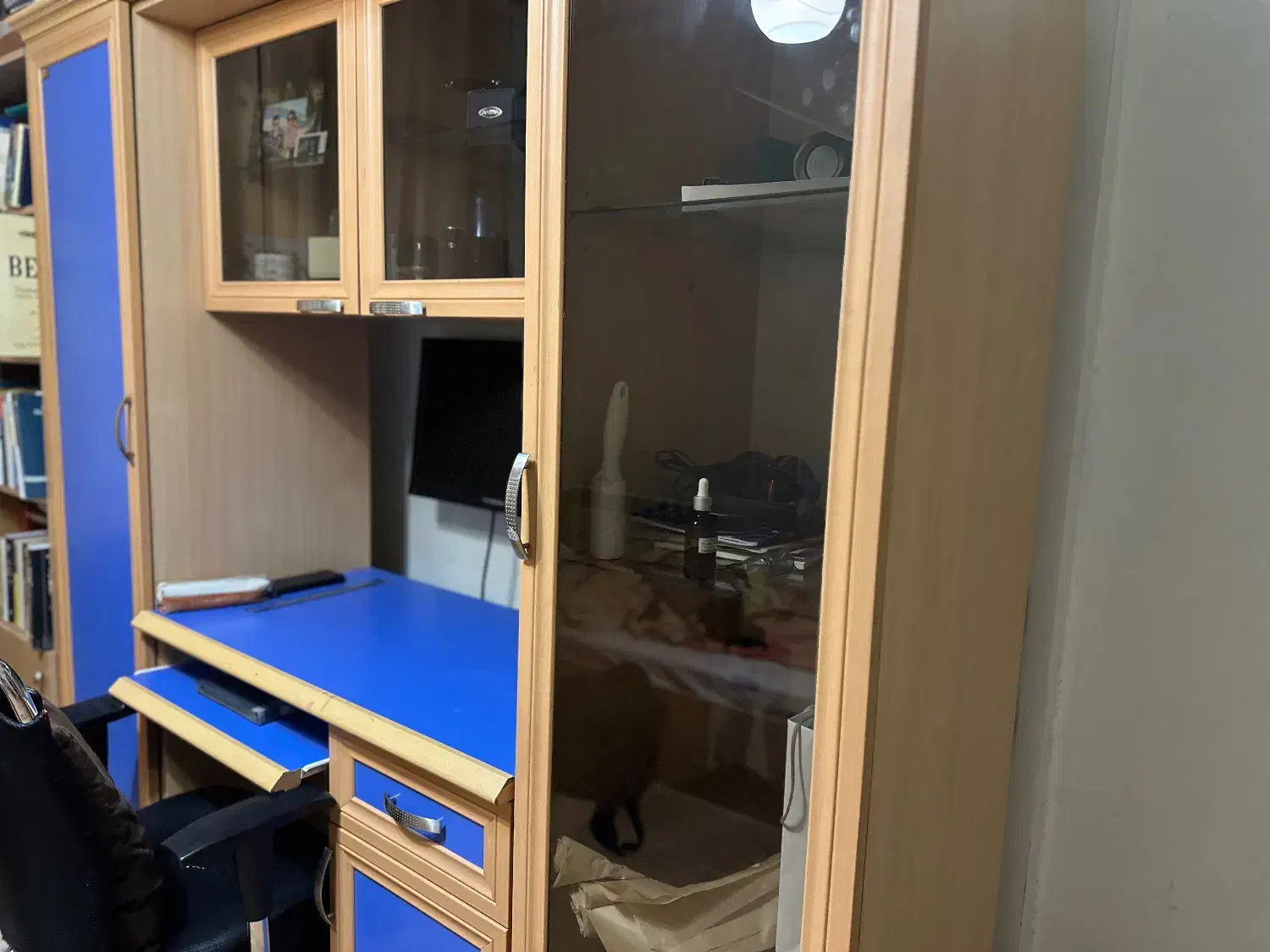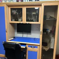 سرویس کامل تخت کمد کتابخانه و میز تحریر آپادانا کاملا سالم بدون ضعف چراغدار تخت با کشو به همراه تشک برند آپادانا باتشکر