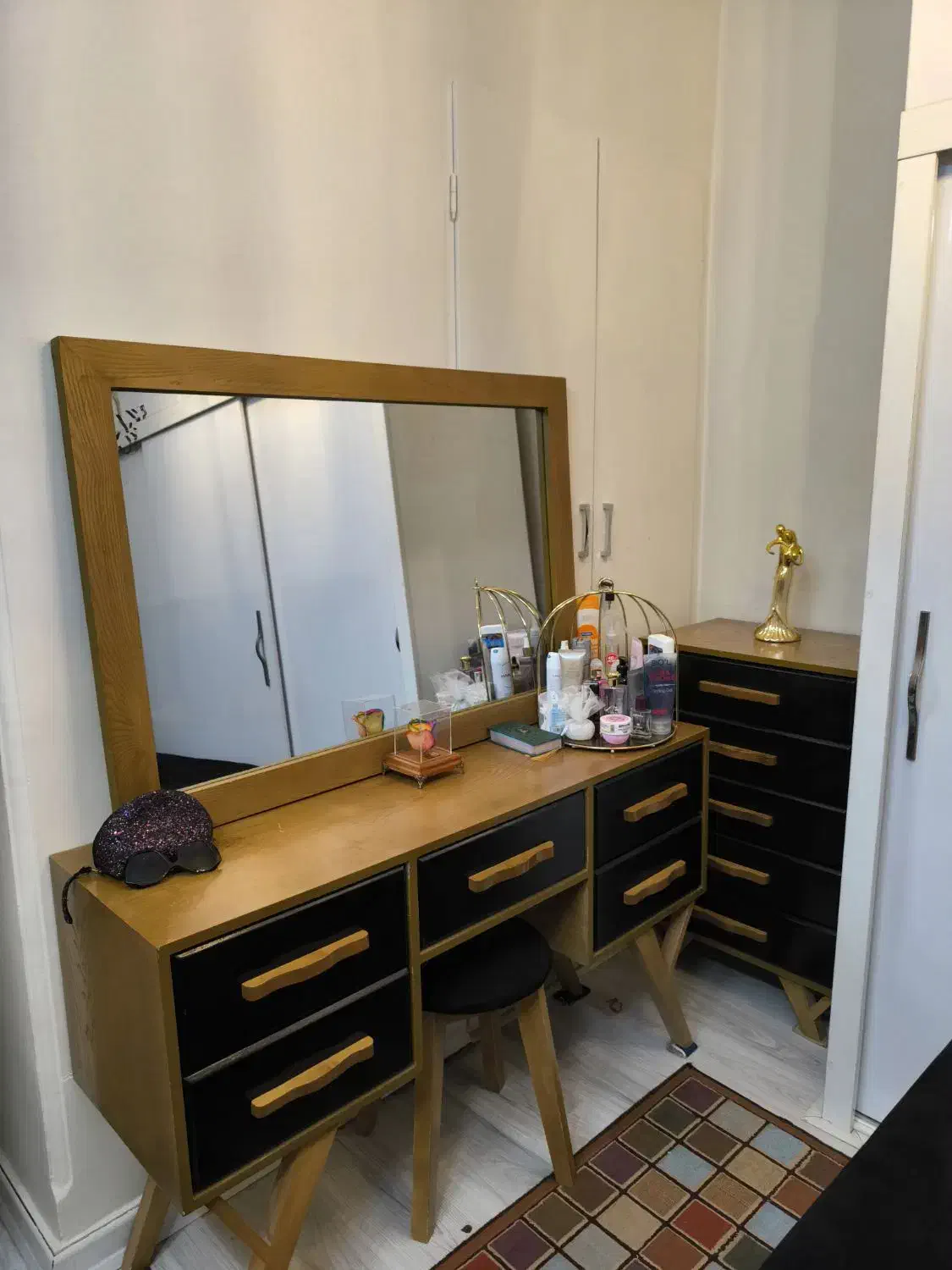 سرویس خواب دو نفره تخت/میز آرایش و آیینه/فایل چهار کشو/پاف/دو عدد پاتختی همراه با آیینه/در حد نو قیمت ۱۸۰/۰۰۰/۰۰۰ میلیون