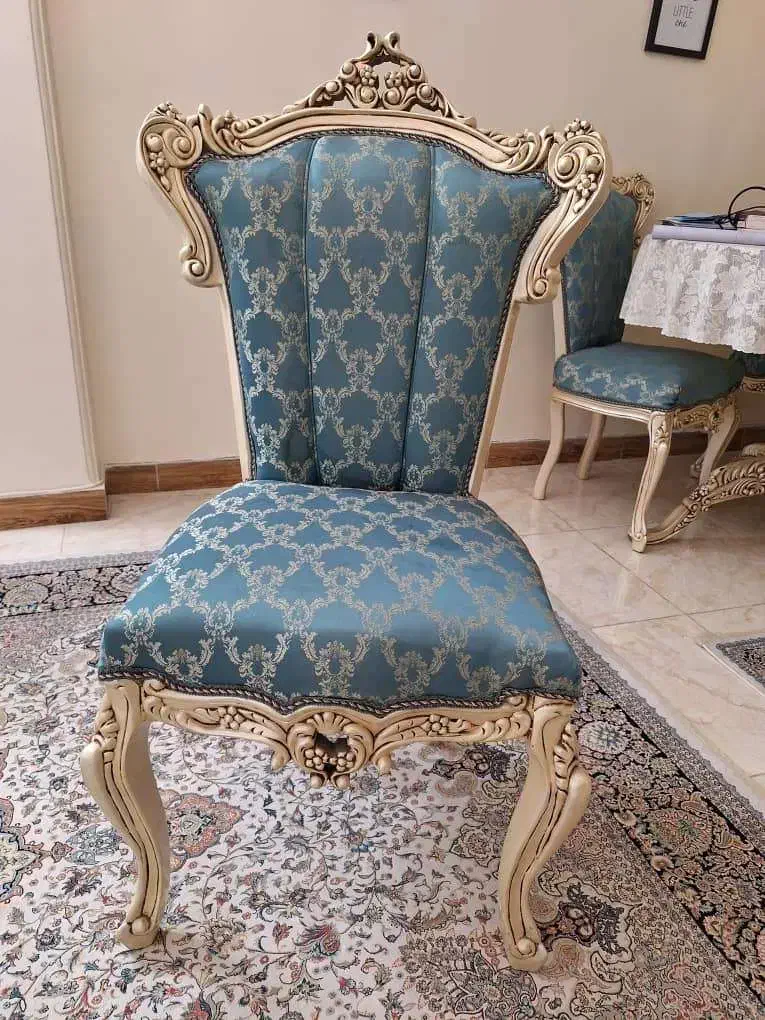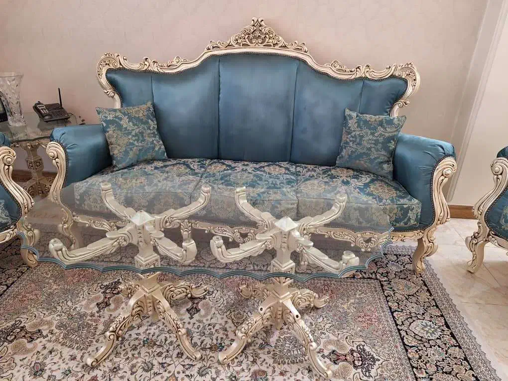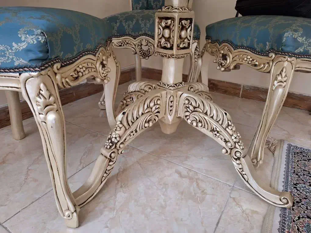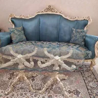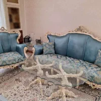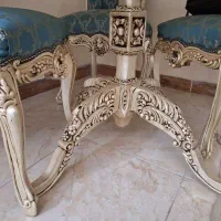 مبل هفت نفره و میز نهارخوری ده نفره منبت کاری ملایر سالم و تمیز ساخت سفارشی رنگ چوب صدفی
