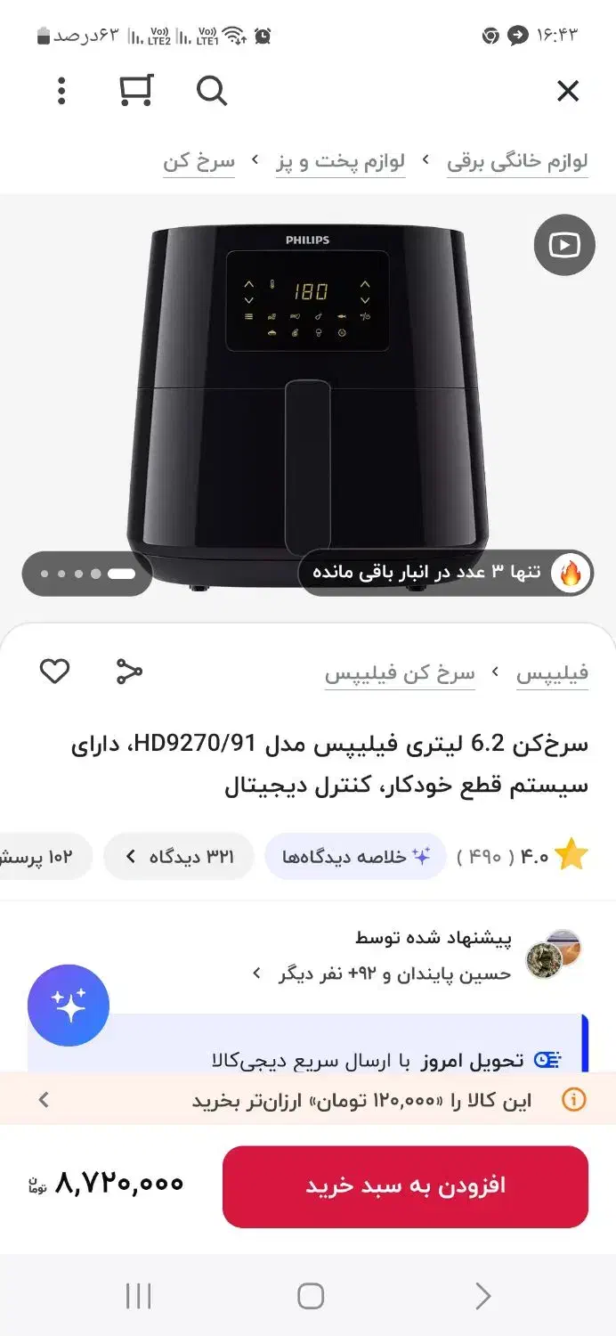 نونو فقط دوبار امتحان شده داخل کارتن تخفیف دارد مشکی مدل ۹۲۷۰ هواپز عالی چندبرنامه پخت بدون روغن جنس درجه یک